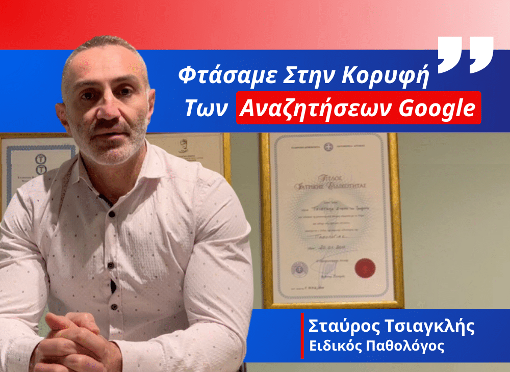 Στην S-Digital, συνεργαστήκαμε με τον κ. Σταύρο Τσιαγκλη, εξειδικευμένο παθολόγο ιατρό, με στόχο την αύξηση της ορατότητάς του στη Google.